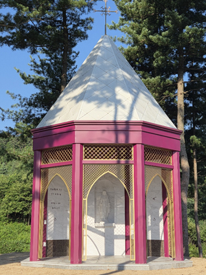 서지마을 뒷산, 비움의 동산 가운데에는 성모정이 있습니다. 파리외방 선교회의 정원에 있는 정자를 본 따 만든 것입니다.